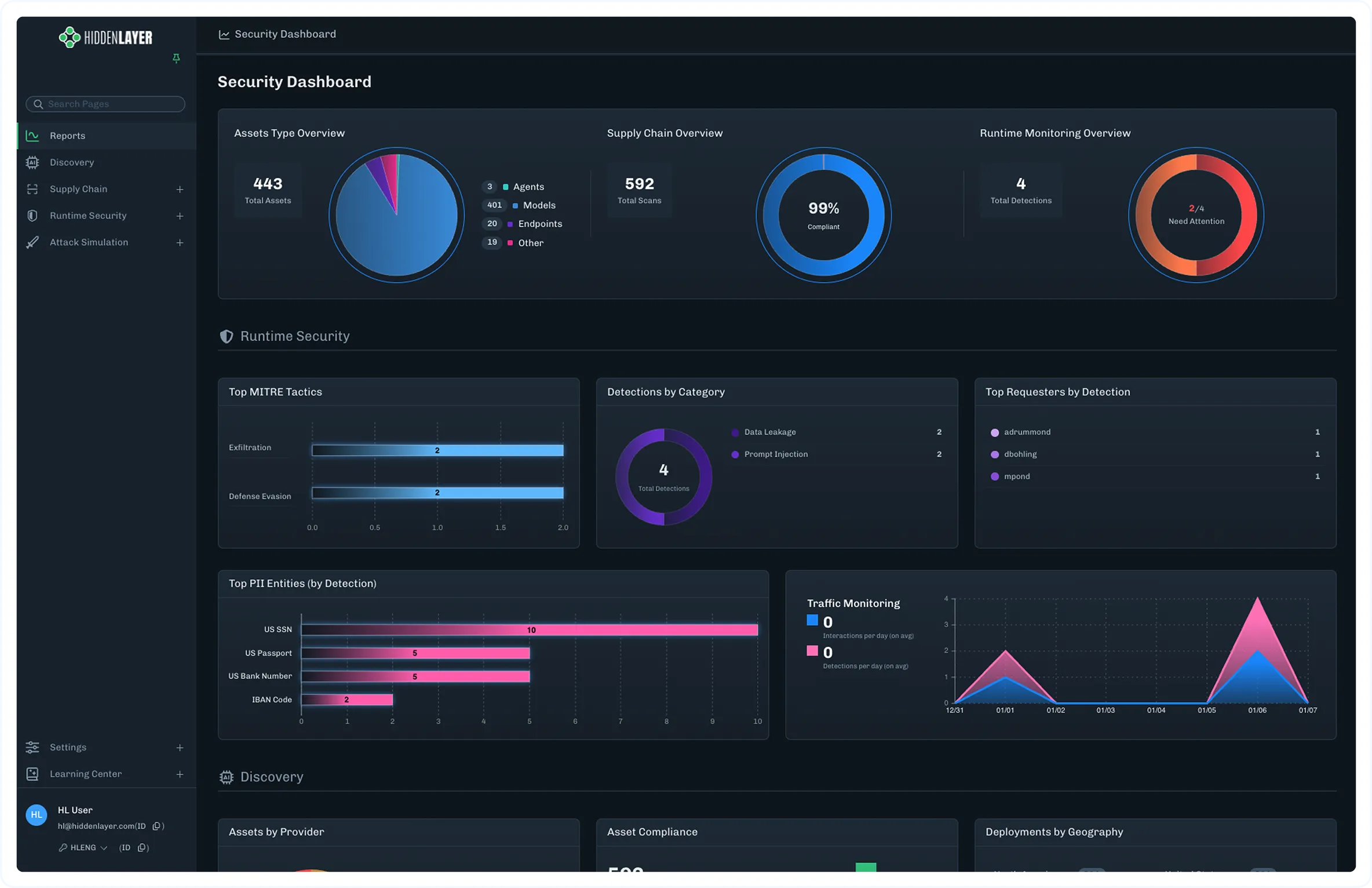 Designed specifically for the unique threats facing models, pipelines, and agentic systems, not retrofitted from traditional cybersecurity.