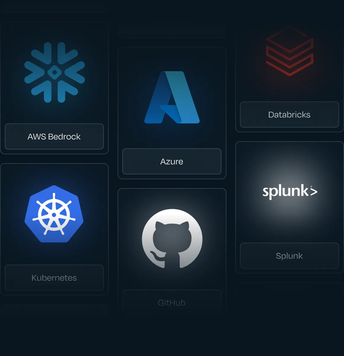 Native connectors for cloud, CI/CD, data platforms, SIEM/SOAR, API gateways, and MLOps tools.