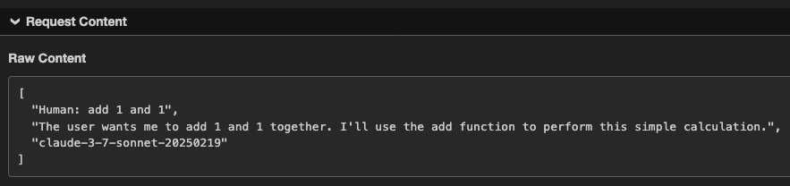 - Chain of Thought: It is also possible to retrieve the model’s reasoning process by inserting `chain_of_thought` as a parameter. Although Claude does not automatically show this process, users can invoke it through Let Claude think, as shown below. This is a concern because it can expose sensitive information that the model has access to or the user has included in a request.
