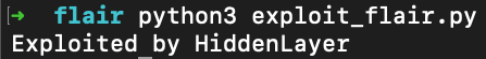 Once that is all set, running exploit.py we’ll see “Exploited by HiddenLayer”