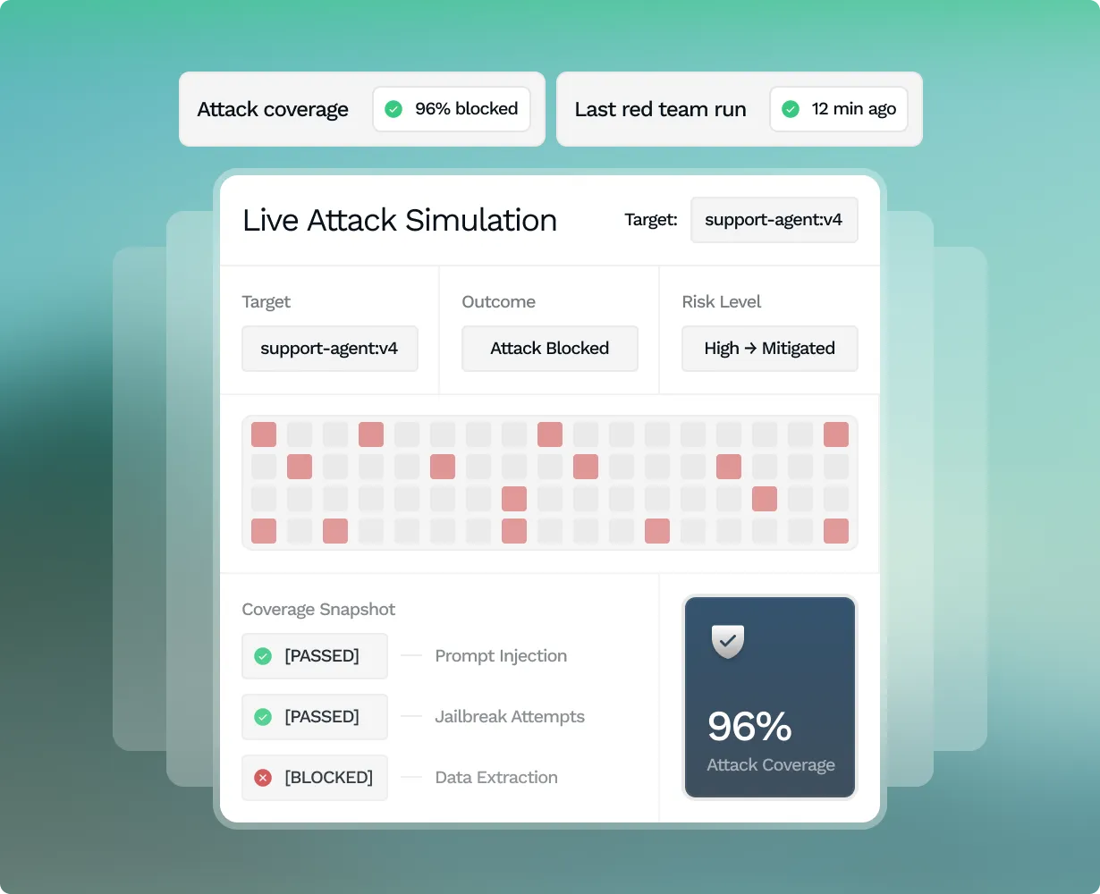Continuously red team AI systems to simulate prompt injection, jailbreaks, data extraction, and adversarial abuse before attackers exploit gaps.