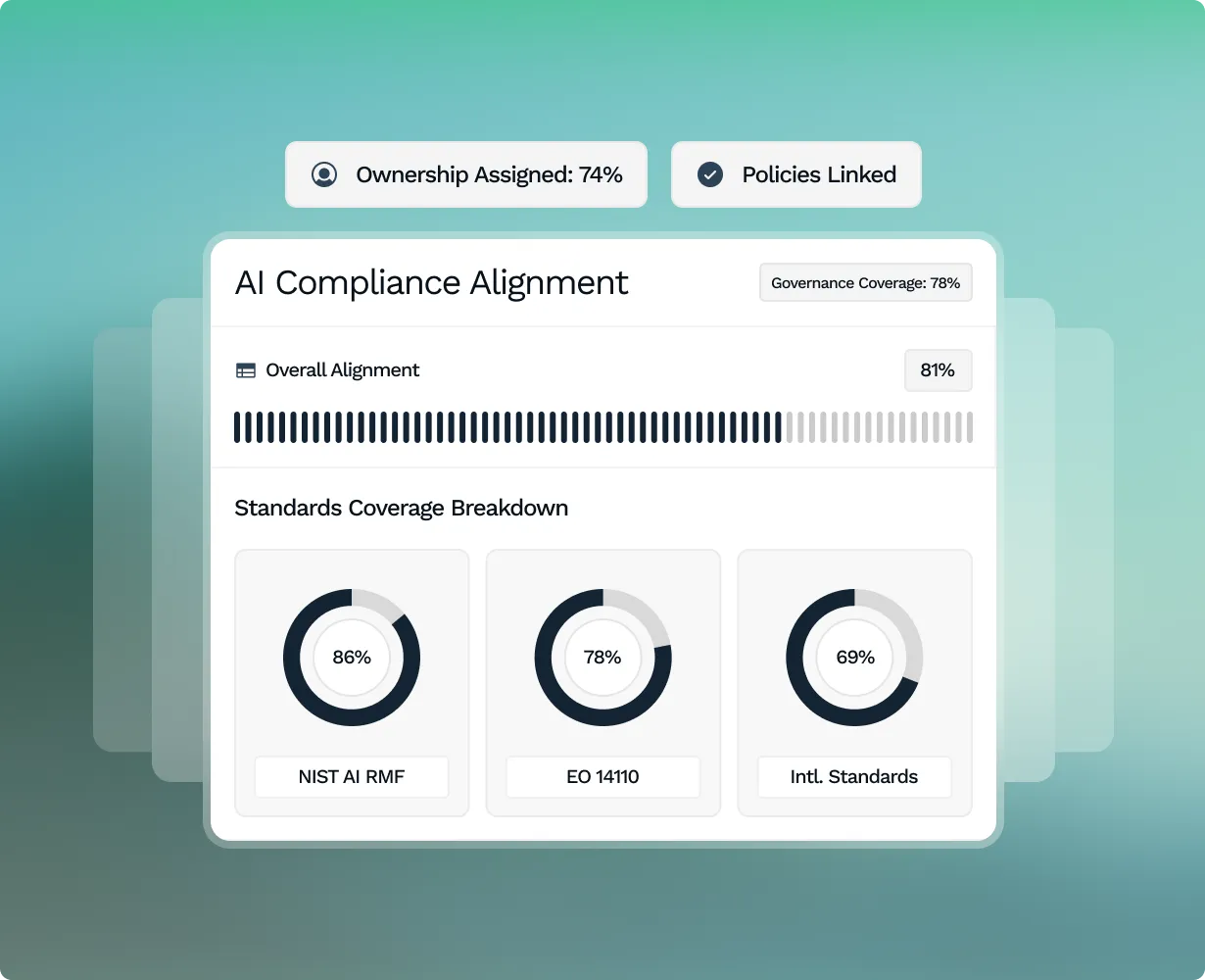 Ensure compliance with NIST AI RMF, Executive Order 14110, and emerging international standards.
