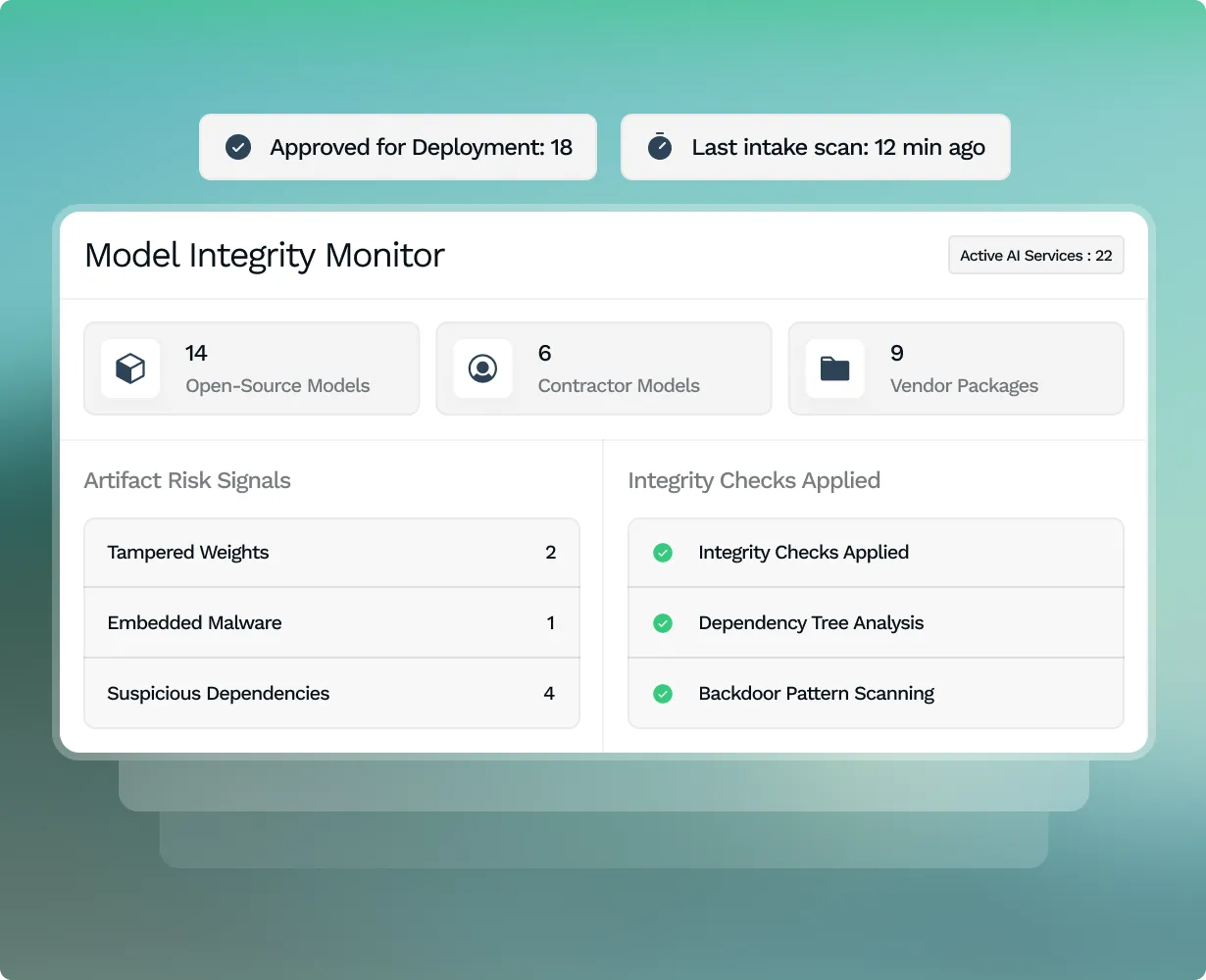 Detect tampered or malicious model artifacts before deployment to critical systems.